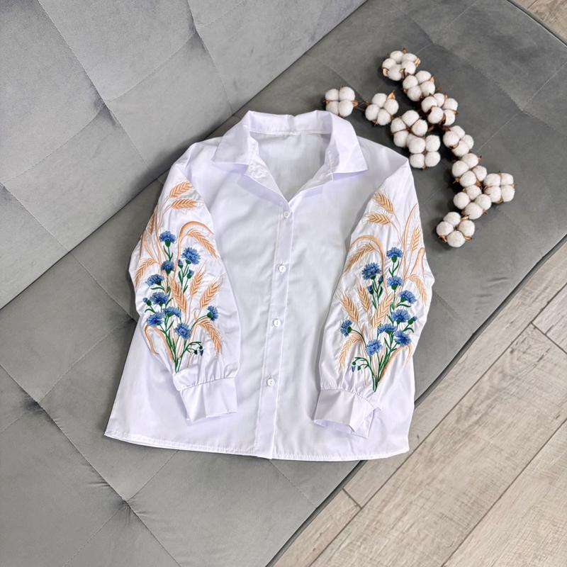 Вышиванка для девочки Пшеница/Волошки на пуговицах. Машинная вышивка, очень красивая и качественная. Ткань коттон-поплин. Манжети на ґудзику. 📐Замеры: рукав от воротника 146 - длин. 56 / полуобхват 49 /рук.59 152 - длин. 59 / полуобхват 51 / Рук.63 158 - длин. 63 / полуобхват 52 / Рук.67 164 - длин. 64 / полуобхват 54 /рук.71 Кнопку КУПИТЬ не жмите, до уточнения деталей Безопасная доставка Новая почта - наляжной платеж с переплатой 150 грн Укрпочта - полная оплата