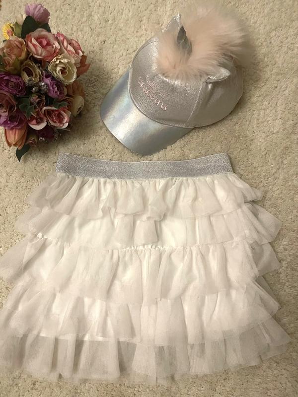 Юбка міні з рюшками та блискучим поясом. Ззаді на фатіні присутні зацепки — в носці не видно. Кнпка LCWaikiki - 200 грн. Срібна з рожевим надписом та мехом. Заміри: довжина-35 пояс - 30 ( у спокійному положенні)