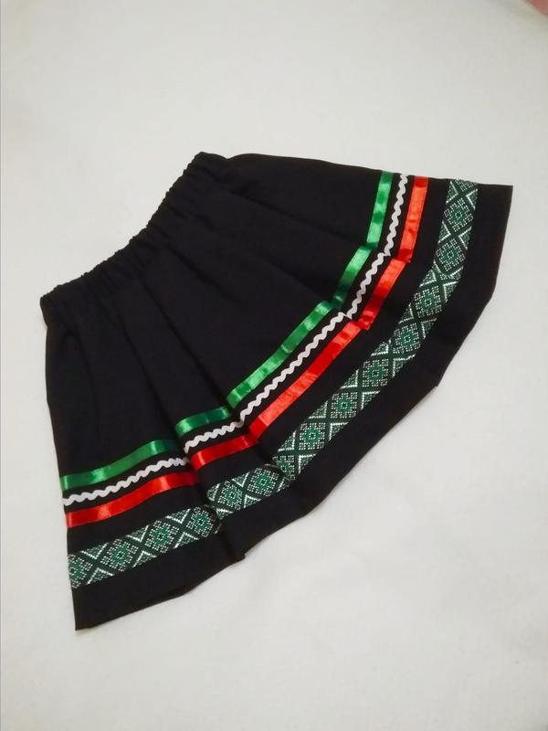 Спідничка чорна з орнаментом на дівчинку 6-7-8 років. Підійде до вишиванки на свято, в садочок, в школу. Тканина м"яка приємна на дотик. Талія на резинці в поясі є отвір можна регулювати. Довжина 32 с. Також, в моїх оголошеннях, є обручі віночки і спіднички інших кольорів з орнаментом і без орнамента.