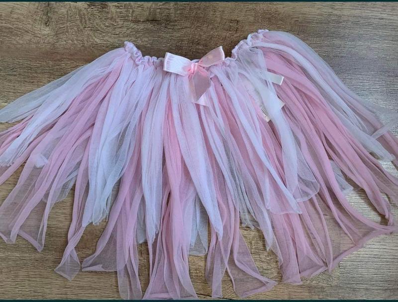 Новой Состояние! Юбочка Фатиновая Девочке для Танцев или для ношения поверх лосин. тм «H&M» Карнавальная „Рваная" Фатиновая One Size Цвет нежно-розовый/белый с атласным бантиком, пояс резинка. Длинна 29см./ пояс 21см.=120грн.