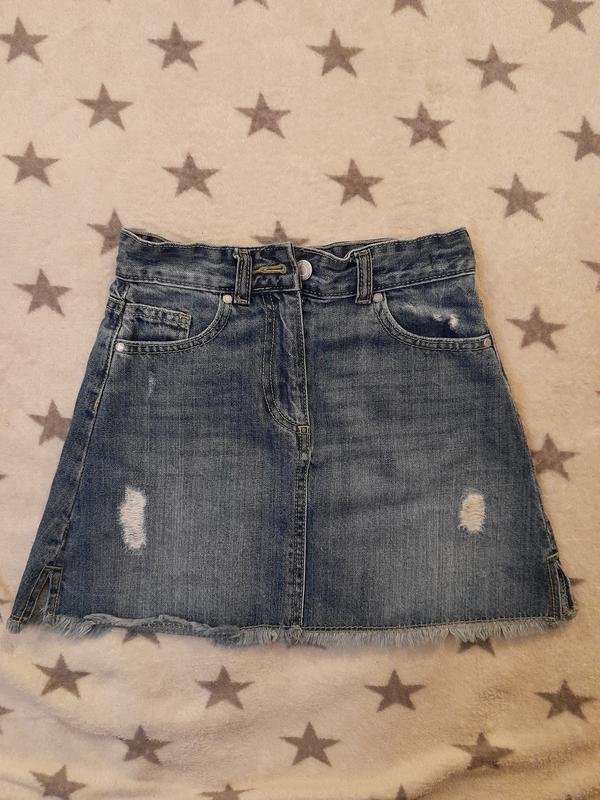 Джинсовая юбка Denim. Состояние идеальное. Пояс изнутри можно затянуть, есть резинки с пуговицами. По бокам разрезы. Размер указан 11 лет, но идёт от 8 до 11 лет