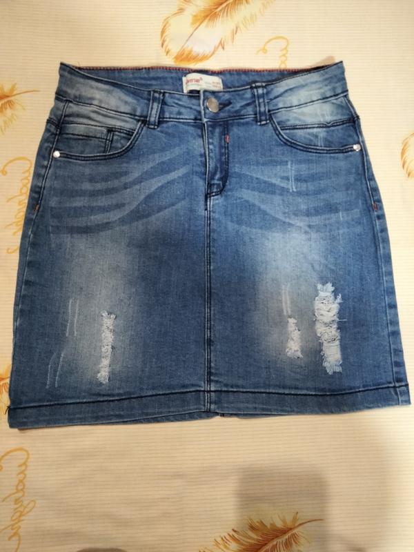 Джинсова спідниця, в дуже гарному стані, була вдягнена декілька разів. розмір 11-12 років, 146 , але ми носили в 10 років, виміри є на фото, тому орієнтуйтеся по ним.