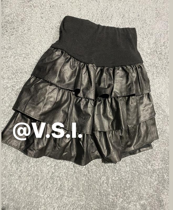 Фото на тілі нема На талії широка манжета з вставленою гумкою Є підкладка підюбник Три шкіряних яруса-рюші з екошкіри Підійде на 4-8 років оріентуйтесь по замірам Довжина 35 см) Пот 21,5 см) Знизу 63-65 см)