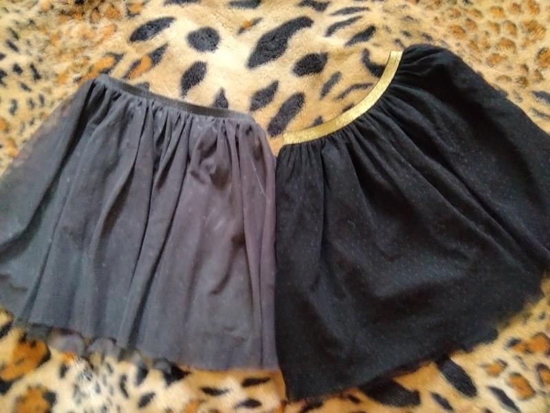 Юбки, очень красивые, идут на 9-12 лет, подюбник, сверху фатин, пояс блёстки, в очень хорошем состоянии, дефект пыталась показать на фото, на чёрной маленькая дырочка, я её едва увидела, на серой есть Пару затяжек сзади, тоже незаметны абсолютно, цена 100грн каждая или 170 грн за 2шт.