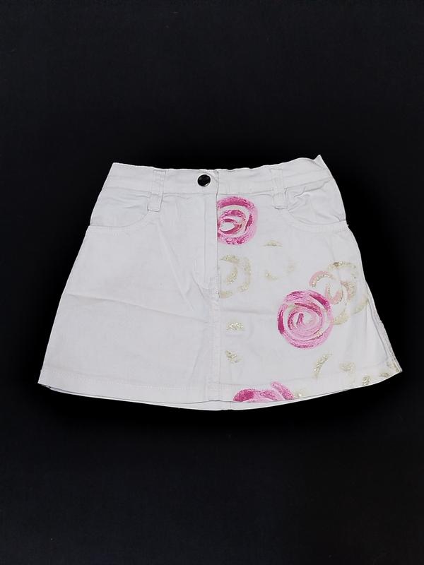 Минимальный заказ у продавца на 100 грн. Симпатичная юбочка белого цвета на девочку 5 лет в очень хорошем состоянии, есть пятнышко сзади. Полуобхват по поясу регулируется резинкой и тянется от 24 см до 28 см, длина по боковому шву 26 см. Ткань тянется. Модель 721