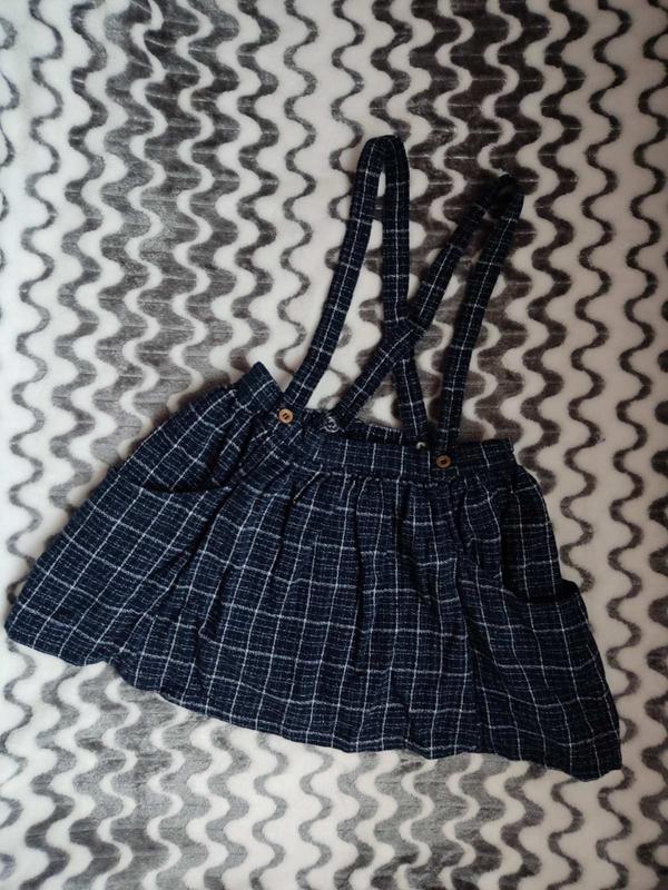 Спідниця з лямками next Розмір 2-3 роки Стан відмінний лямки регулюються і знімаються Виміри: Пояс на гумці не в розтягнутому вигляді 24 Довжина вниз по бічному шву 29 Довжина лямок повністю 55 Ширина знизу 50