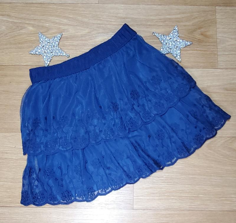 Нарядная фатиновая юбочка с вышивкой на девочку от известного американского бренда Carter's (США). Юбки данного производителя отличаются эффектным дизайном и безукоризненным качеством пошива. В изготовлении используются только лучшие материалы и ткани. Очень красивая юбка подойдет на любое торжественное событие, несомненно подарит праздничное настроение и безусловно придется по душе Вашей принцессе! Внутри хлопковый подъюбник, сверху два слоя фатина На бирке указан возраст 7Т . Обязательно ориентируйтесь только на замеры! длина 33 см ПОТ 27 см