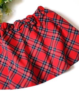 Стильная юбка в клетку в отличном состоянии, на поясе симпатичный бантик, по сборке 6-7 лет. длина 32, ПОТ 27,5 (резинка тянется)