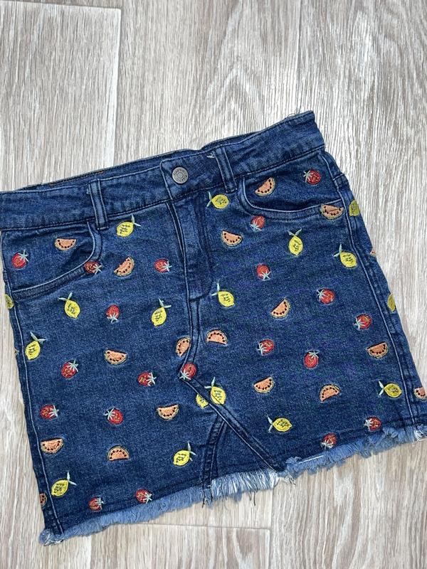 Джинсовая юбочка с вышитым рисунком Спереди и сзади карманы Есть подкладка (коттон) В талии утяжка регулируется Состояние идеал 🏷️Jako 9 лет/134 Длина 32. ПОТ 31