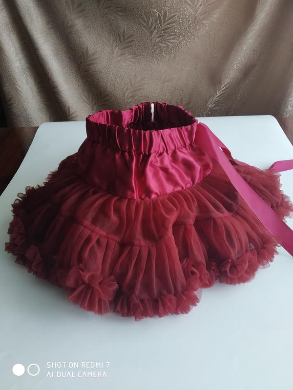 Пушистая юбка для вашей маленькой красавицы. Полуобхват талии 21,5 см общая длина 25 см Талия регулируется.Можна также использовать под платье для увеличения объема, танцевальных кружков.