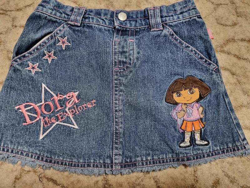 джинсовая юбочка для любительниц Даши следопыт, очень красивая. длина 25 см ширина 27 см, сзади на резиночке есть и другие вещи с этим мультяшным героем, спрашивайте;)