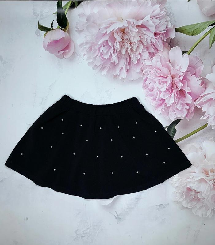 Черная юбка украшенная спереди жемчужинами На подкладке Состояние новой Смотрите замеры Длина 32. ПОТ 29