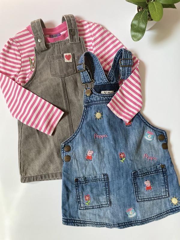 Джинсовые сарафаны,стан идеален Размер 12-18 месяцев Что с сердечком 130 грн С Пепой 150 грн