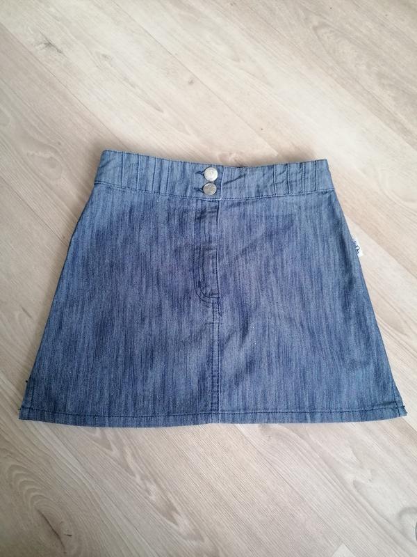 Классная джинсовая юбочка для девочки. Очень хорошее качество, идеальное состояние. Заміри на фото. При покупке трех вещей - доставка бесплатна.