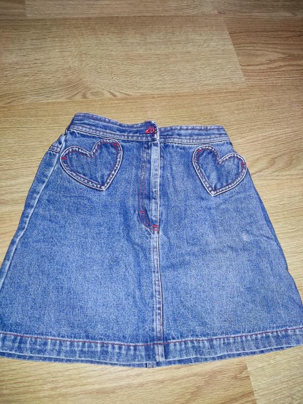 Синяя, детская юбка с резинкой на талии и карманами в виде сердечек