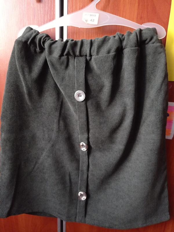 Юбка для девочки, в идеальном состоянии, пояс на резинке, ткань микровельвет. Замеры в сложенном виде: пояс 28 см, растягивается до 40 см длина 40 см. Цвет темно-зеленый.