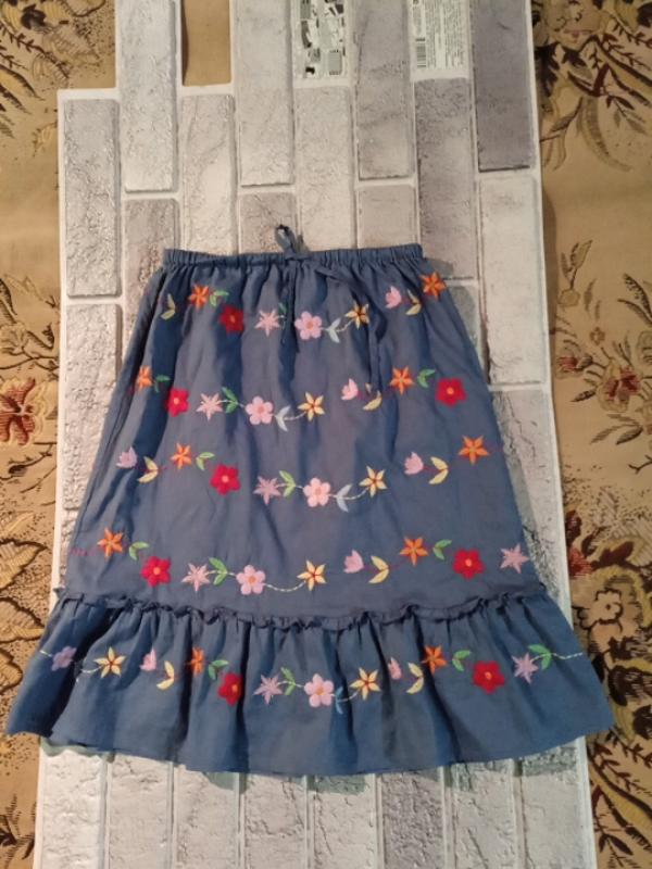 длина 47,пот 27,резинка,шнурок, на підкладці,стан ідеальний, як нова,якісна, гарна, натуральна тканина, вишивка квіти