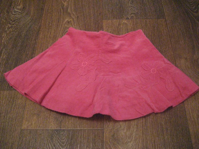 Вельветовая малиновая юбка с аппликацией в тон. На ситцевой подкладке. На возраст 1-1,5 года, но можно и больше.