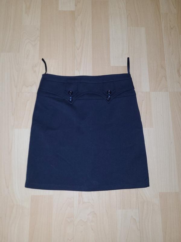 Юбка из теплой ткани, темно-синего цвета, прямого кроя, на подкладе. Измерение на фото