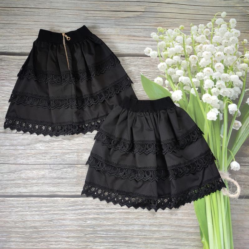 Красивая юбочка ткань костюмка украшена плотным кружевом в поясе резинка 128(1 шт)-длина 40,пояс 22