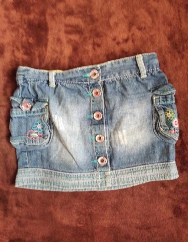 Джинсовая юбка с карманами и нашивками с пуговицами На возраст 2-3 года В поясе резинка В идеальном состоянии По всем дополнительным вопросам обращайтесь в любое время