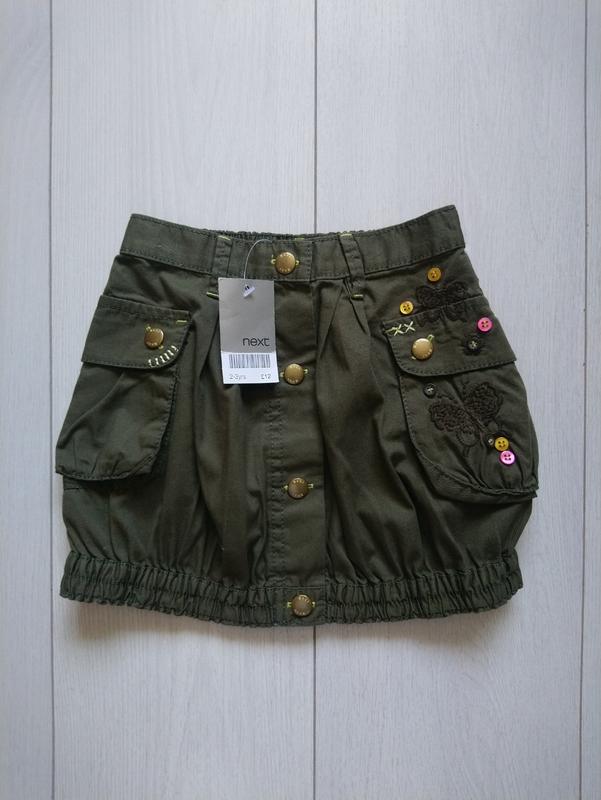 Юбка новая сток Материал коттон Спереди на заклепках На возраст 2-3 года и рост до 98 см Длина 27 см ПОП 22 см и тянется до 28