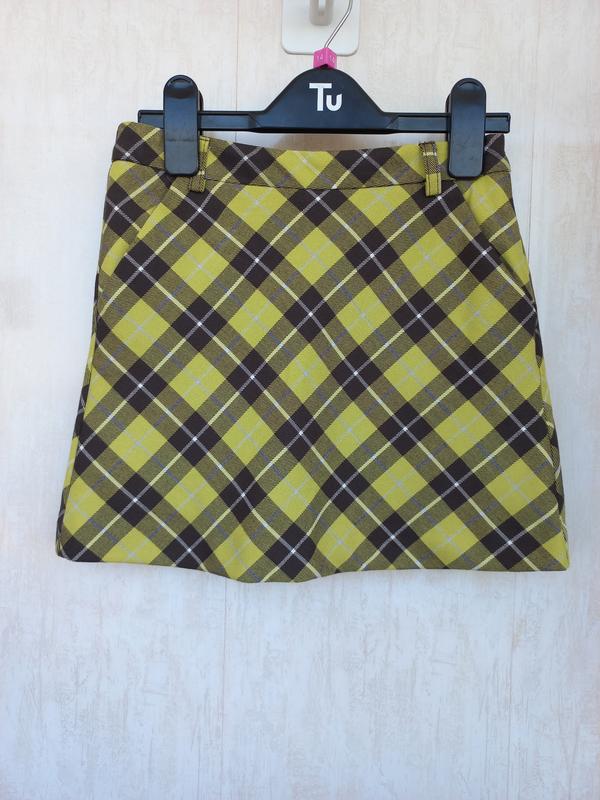 новая без бирки, внутри есть подклатка пошита шортами, сбоку есть кошечки, утяжка и молния. Немного тянется.