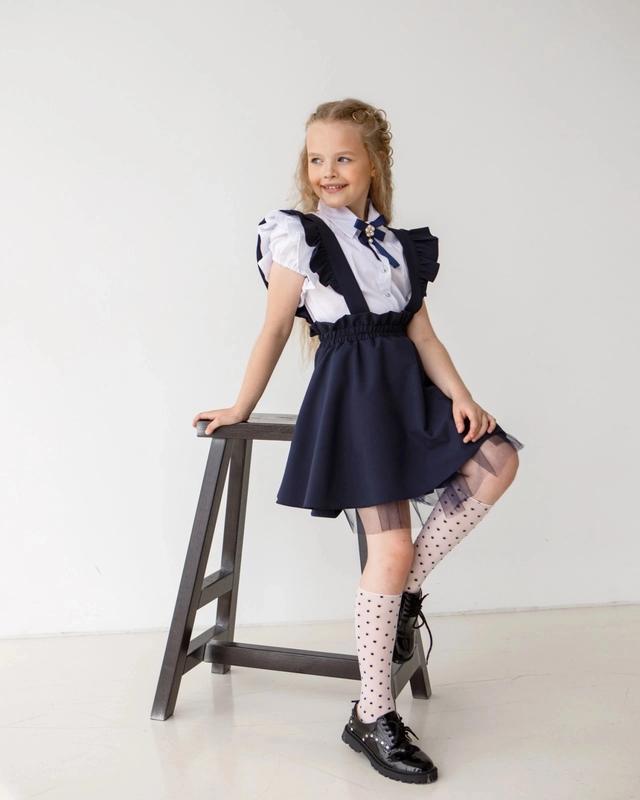 В наличии!😍 Стильная юбка-сарафан Тканина костюмка. Лямки съёмные. Знизу фатин Цвет темно-синий 🌿Размеры: 140 - 1шт 146 - 2шт 🌿 Замеры: Длина юбки с фатином/пояс 116 - 36/21,5 122 - 38/22 128 - 40/22 134 - 42/23 140 - 44/24 146 - 45/25 +-1см Арт Sof