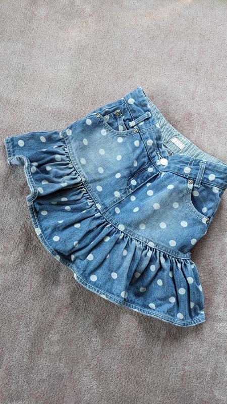 Красивая джинсовая юбочка в горох. По этикетке 8-9 р, но мы носили раньше.