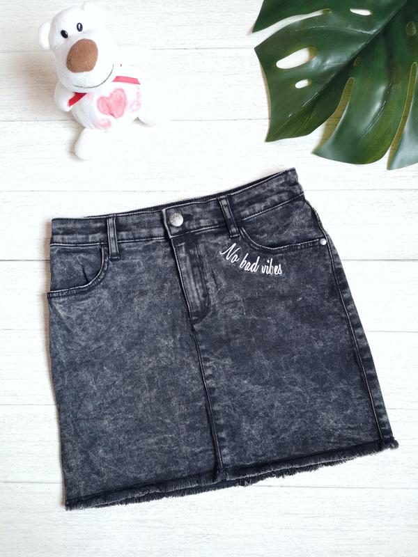 Стильная джинсовая юбочка. Красиво тянется. Замеры : длина по боковому шву 34, пояс 30 (утяжки нет), бедра 37, ширина по низу 39.