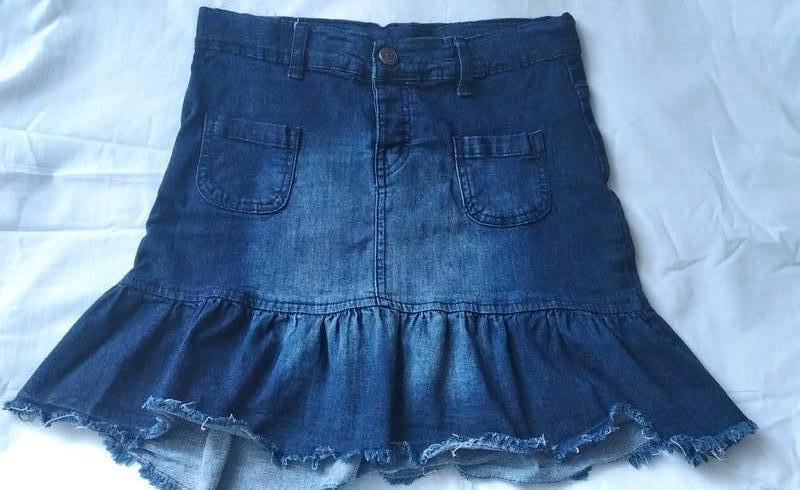 Джинсовая юбочка для вашей девочки. Состав 98% cotton, 2% elastane. Пояс регулируется с помощью резинки и пуговицы. Размер указан 152 11-12 лет. Полу Обхват талии 36см-40см, длина переда 37см, сзади 42см. Юбка покупкись в сток магазине, следов ношения не имеет, также нет сильного запаха.