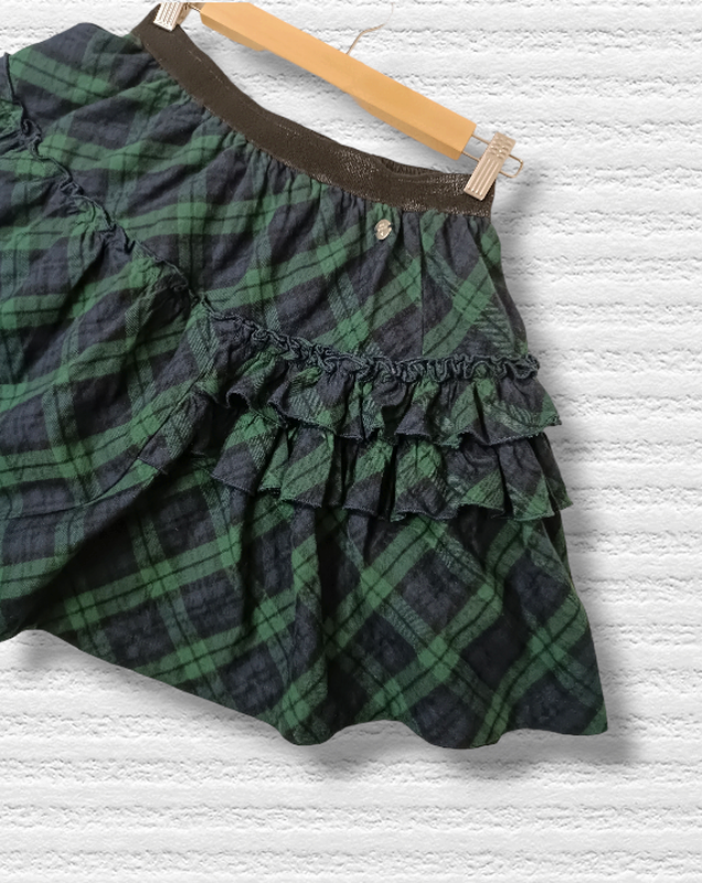 Теплая юбочка для девочки зеленого цвета в клетку поясок на резиночке, есть подкладка Размер указанных на 13 лет, но ориентируйтесь по замерам ПОТ 31 см резинка тянется до 41 см длина 41 см