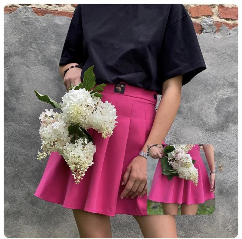 Трендова спідничка - теніска . Збоку ґудзик , позаду в поясі резиночка. Від 140 до 164 р