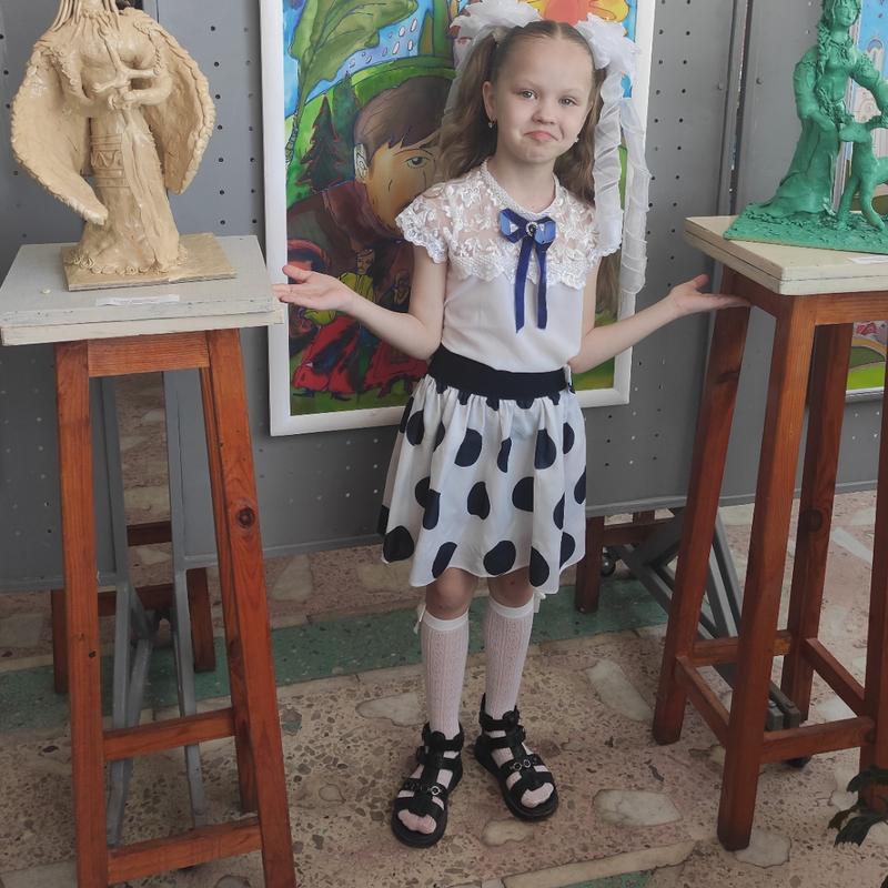 В идеале. Длина 37 см, пояс 24 см. Примерно на 6-8 лет.