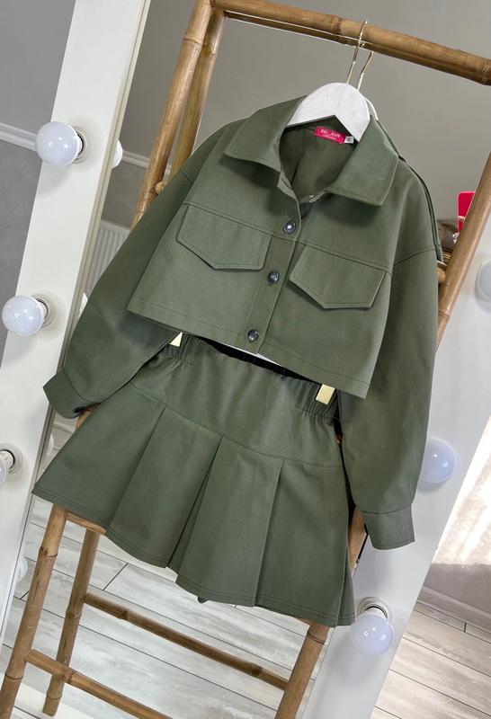 Весняний костюмчик, який заполонив ваше серце 💓 Стильний, модний, стане улюбленим у вашому гардеробі Тканина щільний коттон-джинс вишуканий жакет на ґудзиках, манжет застібається на ґудзик, прикрашений кишеньками обманками, є комірець крутезна спідничка плісеровна, талія на резиночці, дуже гарно сідає по фігурі довжина/рукав від горловини/пог/довжина спідниці/п**********/34/26 146-36/62/41/35/26 152-37/65/43/36/27 158-38/67/45/37/28 164-39/70/46/38/29