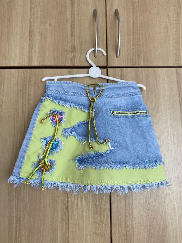 Пояс-24см (резинка), бедра-34см, довжина-26см. Останнє фото-дефект, якщо завʼязати бантик, то не помітно.