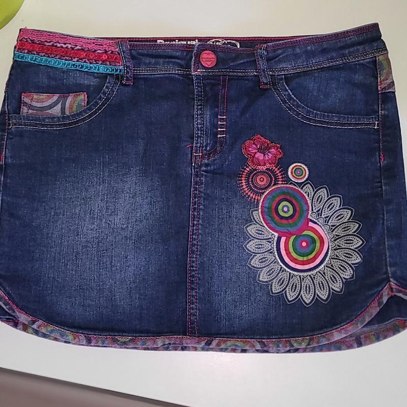 Яркая, стильная юбка Desigual в размере 13-14 лет,в очень красивом состоянии, джинс стрейч тянется. Заміри на фото.