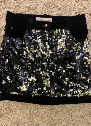 Брендова нарядна спідниця Roccobarocco на 8-11 років. Оригінал. Вибито лого . Прямого крою, паетки, матеріал - велюр. Бажано орієнтуватись на розміри (за необхідністю надам). Можно під поясок. В ідеальному стані.