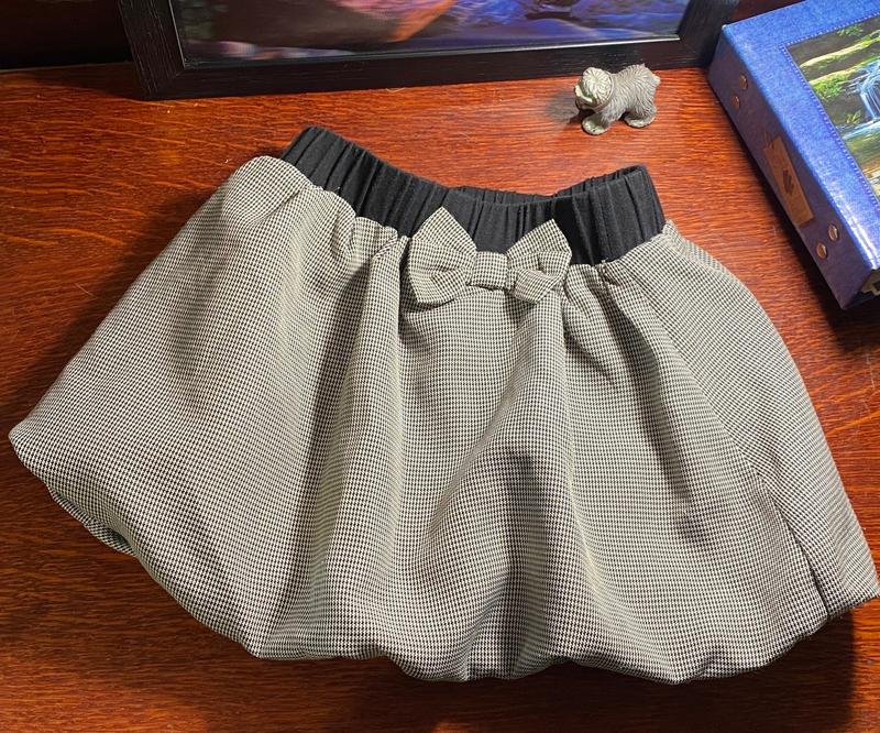 Воздушная юбка на девочку 6-7 лет рост 122 см с рисунком гусиная лапка 68% коттон, 32% полиестер пышная с подкладкой в поясе эластичная широкая резинка, сверху резинки трикотаж Ширина (по талии ) -24-40 см Ширина (по бедрам) - свободная, Длина - 27см