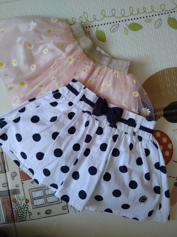 размер производителя указан 12 месяцев примерно будет на 1-2 года, ориентируйтесь по замерам юбочка новая только без этикетки, не успели поносить белая в темно-синей горох
