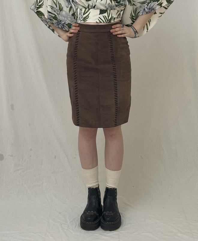 кожаная коричневая юбка. длина до колен. Одежда на рост 177