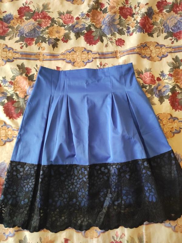 Красивая шёлковая юбка с гипюровым низом. Сзади на молнии. Талия 40 см, длина 62 см, бёдра свободные