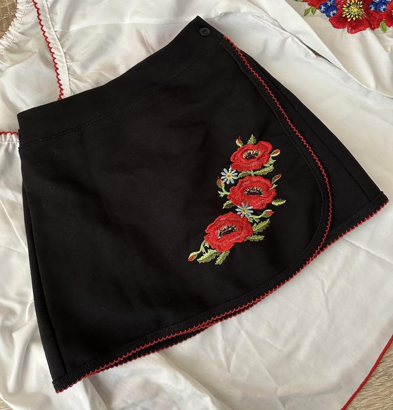 Юбка-вышиванка, 116/122 р., с запахом, пуговицы можно перешивать и регулировать талию по ребенку. 100% хлопок, трикотаж. Состояние отличное, одевали пару раз под вышиванку. Цвет черный. Замеры: длина 27 см, талия 23 см (можно уменьшить/увеличить перешив пуговицу)