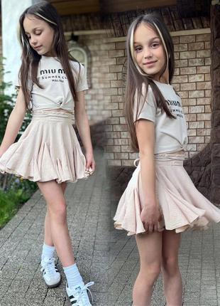Невероятно красивая и стильная юбка 🌸 Девочки точно оценят 💕 Тканина: креп-жатка Дуже пишна,прям вауууу Полномерные! 146 размер подходит на S 💕 Размеры: 122см 4шт 128см 3шт 134см 4шт 140см 2шт 146см 2шт Замеры: длина/бедра/пояс 122 - 31/35/26 128 - 34/36/26 134 - 36/37/27 140 - 38/38/28 146 - 40/39/29