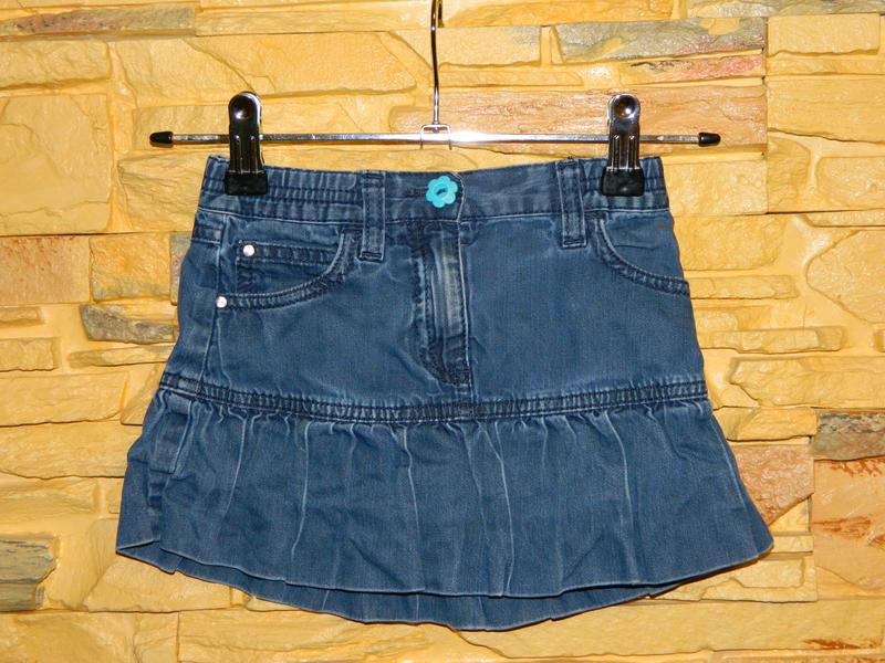 Юбка детская джинсовая на девочку три годика. В отличном состоянии. Застегивается на молнию и пуговицу. Талия полуобхват 26 сантиметров, длина юбки 23 см, бедра полуобхват 30 см, длина молнии 7 см. Красивая пуговица цветок.