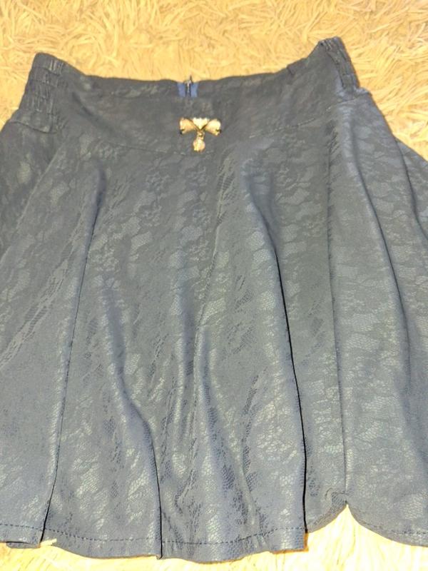 спідниця темно синього кольору, чомусь фото не передає колір, цікава структура тканини: імітація мережива, ідеально підходить в школу