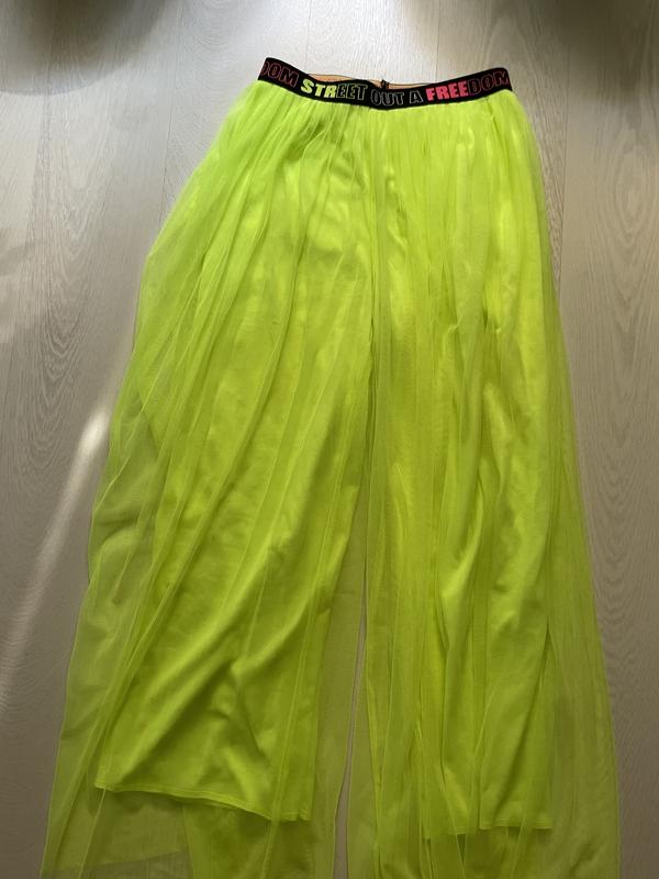 Брюки с поясом резинка, на подкладке. Колый ярко неоновый. Фото на рост 162 см и 50 кг. Состояние новых.