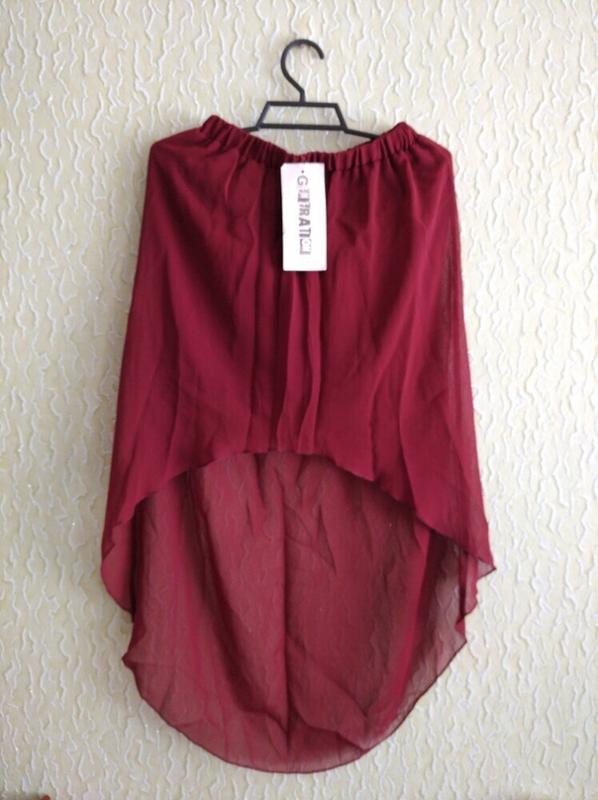 Нова нарядна юбка дівчинці 10 -11 р, р.140-146, New Look , Литва. Колір - бордовий. ПОТ 28 см. Довжина підкладочної юбки 34 см. Довжина юбки ззаді 79 см. ПОБ по підкладочній юбці 41 см. Довжина юбки спереду 35 см.