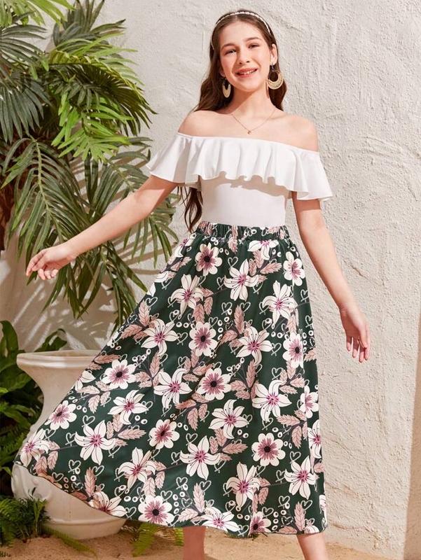 Невероятная юбка-миди в цветочный принт для девочки подростка shein