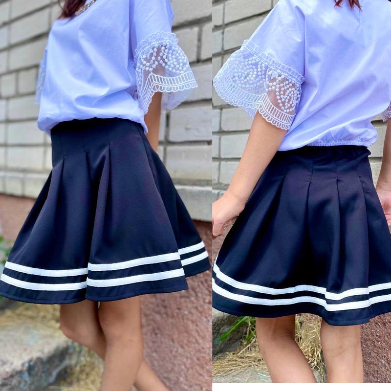 Юбка сбоку застегивается на молнию и пуговицу сзади по талии под резинку тканина костюмка цвет - синий СУПЕР КАЧЕСТВО! рост/длин.юбки/пот похибка+-2см 152/43/28